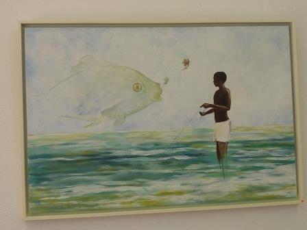 In der Ausstellung 'Der Jäger der Träume' webt die ungewöhnlich vielseitige Künstlerin erstmals 'Geschichten' aus jeweils drei unterschiedlichen Elementen – Bilder, Fotos, Texte. Deren Nebeneinander ermöglicht dem aufmerksamen Blick, sowohl die subtilen Bezüge der einzelnen Werke aufeinander, als auch die inhaltlichen und formalen Ergänzungen zu erkennen, die sich wie Bausteine zu einem Gebäude mit Gedanken-Räumen auf mehreren Etagen zusammenfügen.