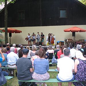 Umrahmt wird die Sommervernissage mit Musik, Gesang und Tanz von Nutzergruppen und Freunden der Mohr-Villa.