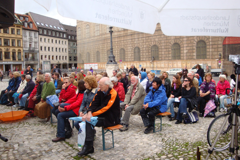 Am Odeonsplatz lesen unter anderem: Constanze von Hassel, Helmut Markwort, Ricci Hohlt, Hans Jochen Vogel, Gerd Bergmann, Barbara Dickmann, Hans Georg Küppers, Christian Wolff, Peter Machac und Monika Strauch, Sabine Leutheusser-Schnarrenberger, Claus von Wagner, Dieter Hildebrandt, Ludwig Spaenle, Gerhard Schmitt-Thiel, Seminarteilnehmer*innen, der LMU, Schüler der Situli-Schule Freimann, Studierende der Otto-Falckenberg-Schule.